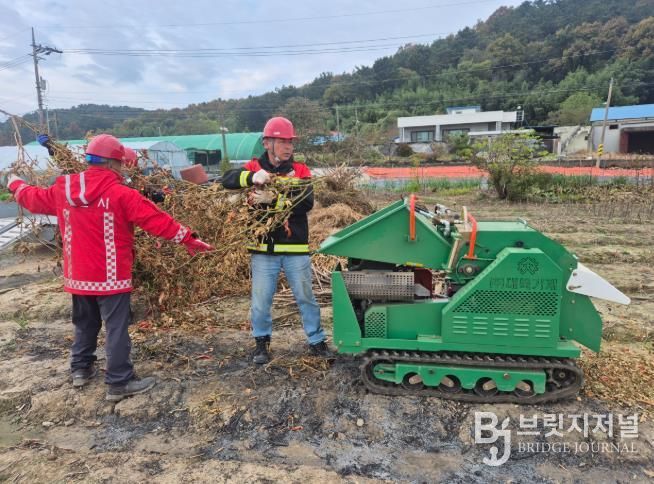 시는 이달 71농가(11개 지역)를 대상으로 약 93톤 규모의 영농부산물 파쇄 신청을 접수했으며, 파쇄기 5대와 인력을 투입해 다음달 15일까지 전량 파쇄할 계획이다.