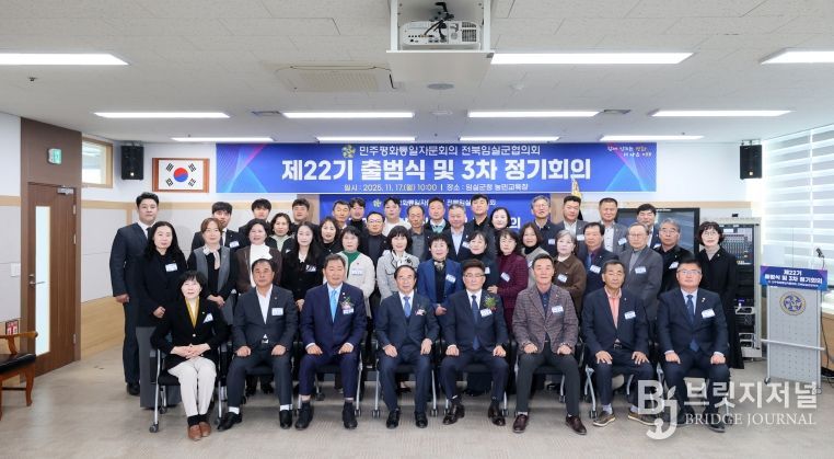 브릿지저널 윤나영 기자 | 민주평화통일자문회의 임실군협의회(협의회장 염상열)는 11월 17일 10시 임실군청 농민교육장에서 심민 군수, 자문위원 등 60여명이 참석한 가운데 ‘제22기 출범식 및 2025년 3차 정기회의'를 개최했다.