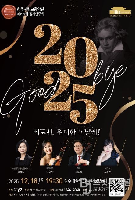 브릿지저널 김경미 기자 | 청주시립교향악단은 오는 12월 18일 오후 7시 30분 청주예술의전당 대공연장에서 제199회 정기연주회 ‘Good bye 2025 – 베토벤, 위대한 피날레!’ 공연을 개최한다.