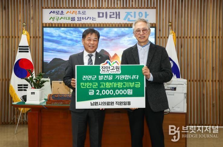 브릿지저널 윤나영 기자 | 진안군은 18일 남원시의료원에서 군을 방문해 고향사랑기부금 200만원을 기탁했다고 밝혔다.