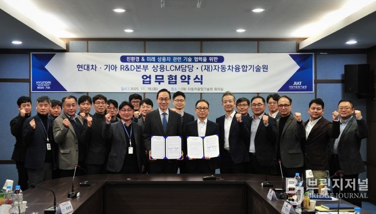 브릿지저널 윤나영 기자 | 자동차융합기술원과 현대차·기아 R&D본부 상용LCM담당(부사장 박상현)은 11월 18일 친환경 및 미래상용차 분야 기술협력을 위한 업무협약(MOU)를 체결했다.