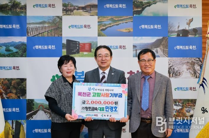 브릿지저널 김경미 기자 | 옥천군 관내 기업 ㈜창조금속 민경호 대표가 지난해와 마찬가지로 고향사랑기부금 200만 원을 기탁하며 옥천의 발전을 응원했다.