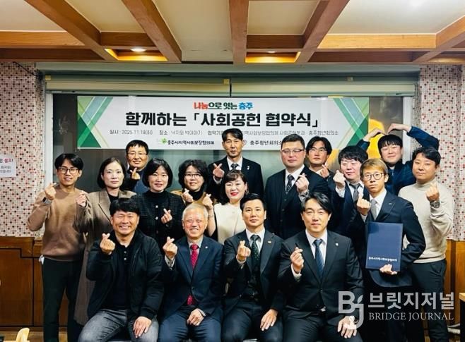 브릿지저널 김경미 기자 | 충주시지역사회보장협의체 사회공헌분과는 충주청년회의소와 ‘나눔으로 잇는 충주, 함께하는 사회공헌’ 업무협약을 체결했다고 19일 밝혔다.