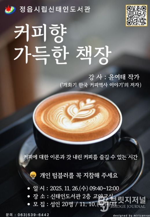 브릿지저널 윤나영 기자 | 깊어가는 가을, 정읍 신태인도서관이 그윽한 커피 향기로 채워진다.