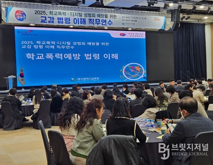 브릿지저널 김진석 기자 | 대구시교육청은 11월 20일과 11월 21일, 양일간 엑스코에서 초·중·고·특·각종학교 교감 430여 명을 대상으로 ‘학교폭력‧디지털 성범죄 예방을 위한 법령 이해 연수’를 운영한다.