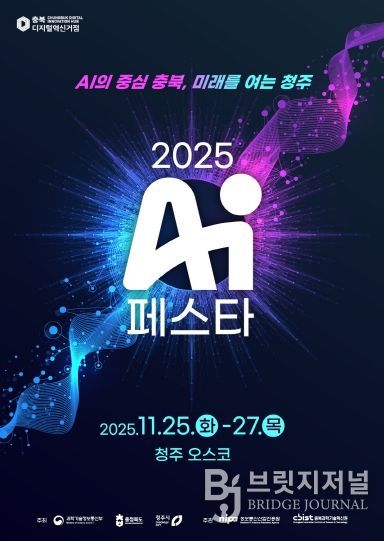브릿지저널 김경미 기자 | 충북도는 청주시, 충북과학기술원과 함께 오는 11월 25일부터 27일까지 청주오스코에서 'AI 페스타 2025'를 개최한다. ‘AI 중심 충북, 미래를 여는 청주!’를 슬로건으로 열리는 이번 행사는 충청권 최대 규모의 디지털 융합 축제로, MS코리아, KT, 에코프로 등 국내외 주요 기업과 도내 혁신기업 등 50여 개 기업·기관이 참여하고, 3,000여 명의 참관객이 함께할 예정이다.
