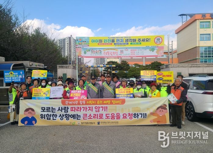 브릿지저널 김경미 기자 | 청주시는 20일 청원구 주중초등학교 일원에서 어린이 등하굣길 안전 확보를 위한 ‘어린이 약취·유인 예방 캠페인’을 실시했다.