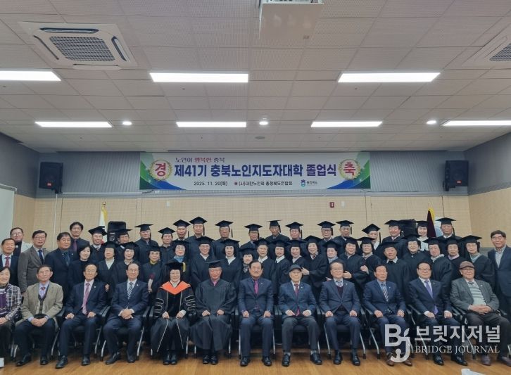 브릿지저널 김경미 기자 | 대한노인회 충청북도연합회(회장 이명식) 부설 충북노인지도자대학 제41기 졸업식이 20일 도연합회 소강당에서 열렸다.