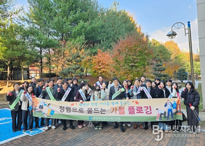 브릿지저널 김경미 기자 | 청주교육지원청은 11월 20일 ‘가을 청렴 플로깅데이’를 맞아 청주교육지원청 청사 주변과 두꺼비 생태공원 등 산남동 일대에서 환경 정화 활동을 실시했다.