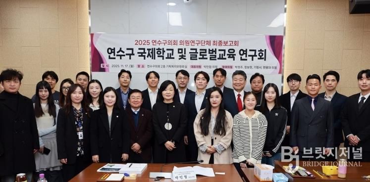 브릿지저널 김경미 기자 | 연수구의회 의원연구단체인 '연수구 국제학교 및 글로벌교육 연구회'(대표의원 박민협)는 2025년 11월 17일, 연수구의회 기획복지위원회실에서 최종보고회를 개최했다.