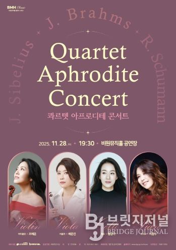 브릿지저널 김진석 기자 | 비원뮤직홀에서는 BMH 클래식 시리즈로 정통 클래식 공연을 심도 있게 감상할 수 있는 콰르텟 아프로디테 콘서트를 개최해 지역민들에게 고품격 문화를 선사한다.