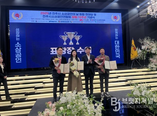 이어진 표창 및 감사패 수여식에서는 지역경제 발전 유공자들에게 표창장이 수여됐으며, 소상공인 정책 지원에 힘써 온 신유정·한승우 전주시의회 의원이 감사패를 받았다.