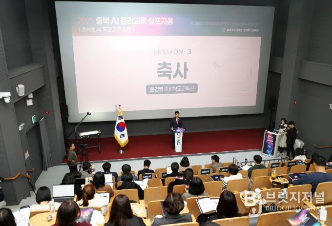 브릿지저널 김경미 기자 | 충청북도교육청은 24일, 미디어교육센터 다목적상영관에서 2025. 충북 AI 윤리교육 심포지엄을 개최하며, 교육현장에 적용할 충북형 AI 윤리 기준에 관해 설명하고 교육공동체의 의견을 수렴하는 시간을 가졌다.