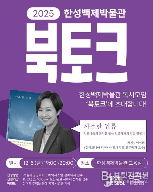 브릿지저널 김경미 기자 | 서울시 한성백제박물관은 올해 두 차례 운영된 역사독서모임 ‘북토크’를 12월 5일에 추가 개최한다고 밝혔다. 당초 연 2회 운영했으나 높은 시민 호응에 힘입어 추가 편성을 결정한 것이다. 이번 행사는 서울시 대표 야간문화 프로그램 ‘문화로 야금야금(夜金)’의 일환으로, 금요일 밤 박물관에서 역사학·고고학 분야 저자와 시민이 직접 소통할 수 있는 자리로 마련됐다.
