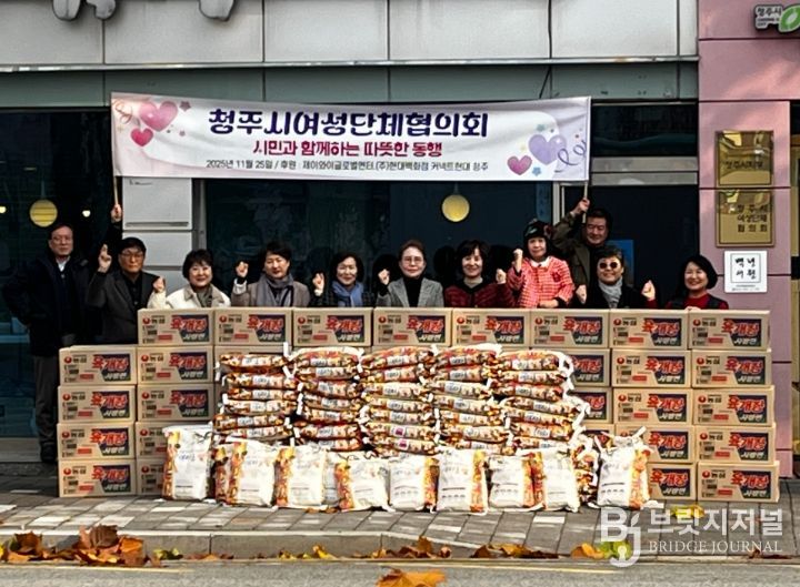 브릿지저널 김경미 기자 | 청주시여성단체협의회(회장 박은주)는 25일 연말을 맞아 협의회 사무실에서 지역 내 취약계층을 지원하기 위한 ‘연말 사랑 나눔 기탁식’을 개최했다.