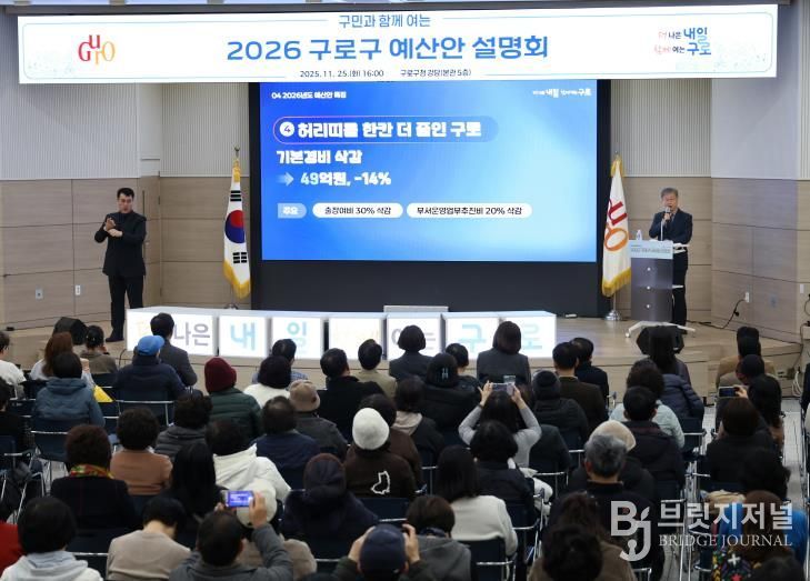 브릿지저널 김경미 기자 | 구로구가 25일 오후 4시에 구청 강당에서 ‘구민과 함께 여는 2026 구로구 예산안 설명회’를 개최했다.