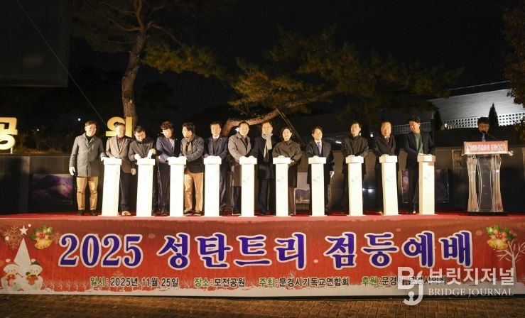 브릿지저널 정보영 기자 | 문경시는 지난 25일 성탄을 맞이하여 성탄 트리를 설치하고 문경시기독교연합회(회장 문은석) 주관으로 모전공원 광장에서 관내 기독교 신도 및 시민 등 200여 명이 참석한 가운데 ‘2025년 시민화합 성탄트리 점등식’을 했다.