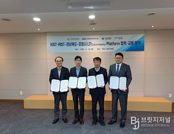 브릿지저널 정보영 기자 | 경상북도는 25일 포항산업과학연구원에서 포항시, 한국과학기술연구원(KIST), 포항산업과학연구원(RIST)과 함께 청정연료 생산기술 관련 ‘LTI 플랫폼 기반 그린-올 생산기술 개발 실증사업’ 추진을 위한 업무협약(MOU)을 체결했다.