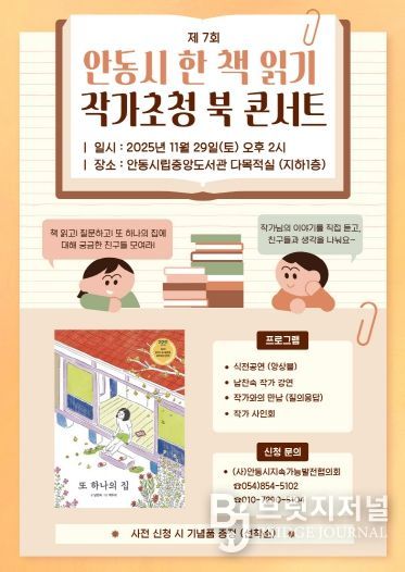 브릿지저널 정보영 기자 | (사)안동시지속가능발전협의회는 오는 11월 29일 오후 2시, 안동시립중앙도서관 다목적실에서 작가 초청 북콘서트를 개최한다.