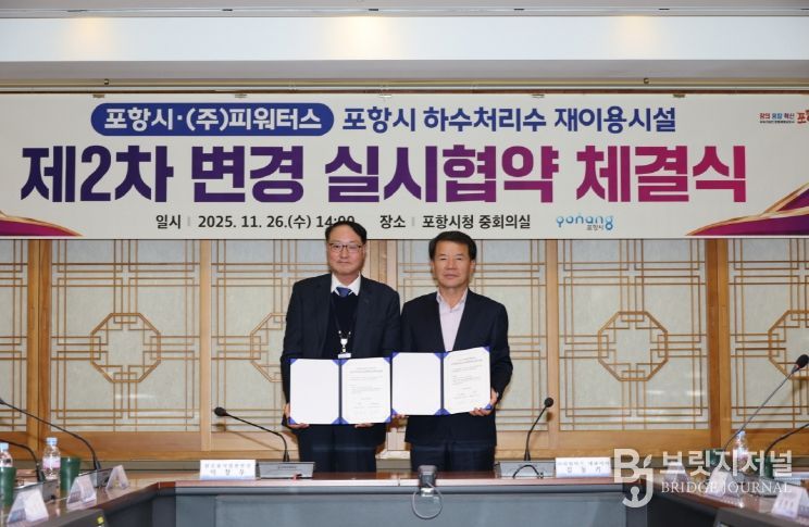 브릿지저널 정보영 기자 | 포항시는 26일 하수처리수 재이용시설 민간투자사업의 안정적 운영 기반을 강화하기 위한 제2차 변경 실시협약 체결을 성공적으로 마무리했다.