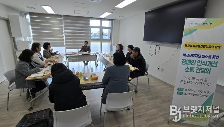 브릿지저널 윤나영 기자 | 울산 중구지역사회보장협의체 장애인분과가 11월 26일 오전 11시 울산장애인통합지원센터 교육실에서 ‘복지사각지대 해소를 위한 장애인 인식 개선 소통 간담회’를 개최했다.