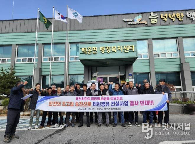 브릿지저널 김경미 기자 | 백운면 이장협의회는 지난 26일 백운면에서 열린 11월 월례회의에서 345KV 신평창-신원주 송전선로 건설사업 제천 경유 결사 반대 결의문을 채택했다.