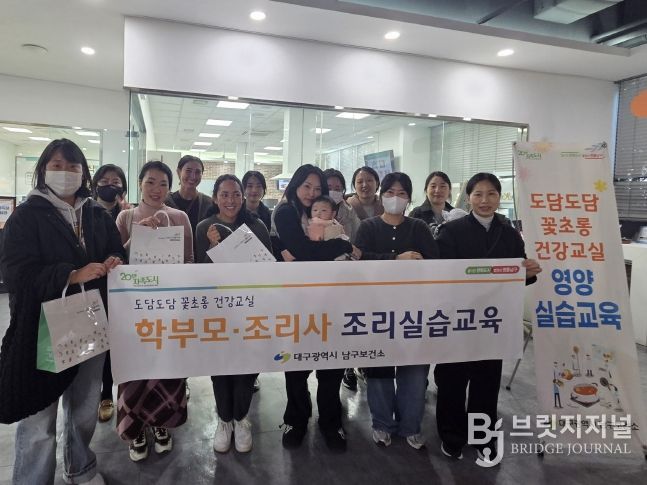 브릿지저널 김진석 기자 | 대구 남구보건소는 지난 24일 유아 건강관리 프로그램 ‘도담도담 꽃초롱 건강가꾸기’사업의 일환으로 관내 유치원 및 어린이집의 학부모 등을 대상으로 조리실습 및 식생활 인식 개선 교육을 진행했다.