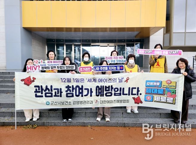 브릿지저널 윤나영 기자 | 군산시보건소는 12월 1일 세계 에이즈의 날을 맞아 대한에이즈예방협회 전북지회와 함께 27일 군산대학교에서 ‘에이즈 바로알기’ 현장 홍보 캠페인을 진행했다.