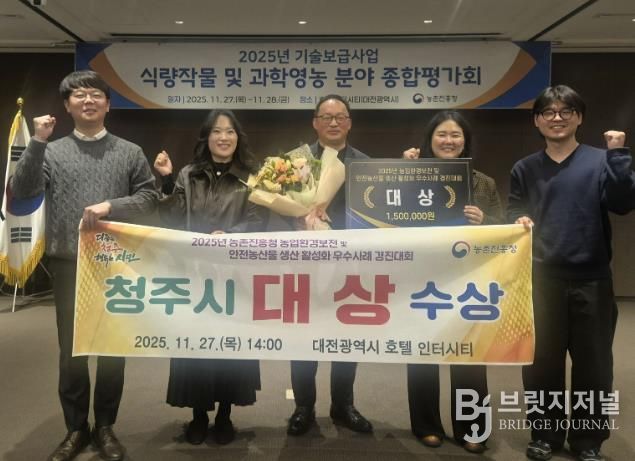 브릿지저널 김경미 기자 | 청주시농업기술센터는 농촌진흥청이 주관한 ‘2025년 농업환경보전 및 안전농산물 생산 우수사례 경진대회’(이하 경진대회)에서 대상(전국 1위)을 수상했다고 28일 밝혔다.