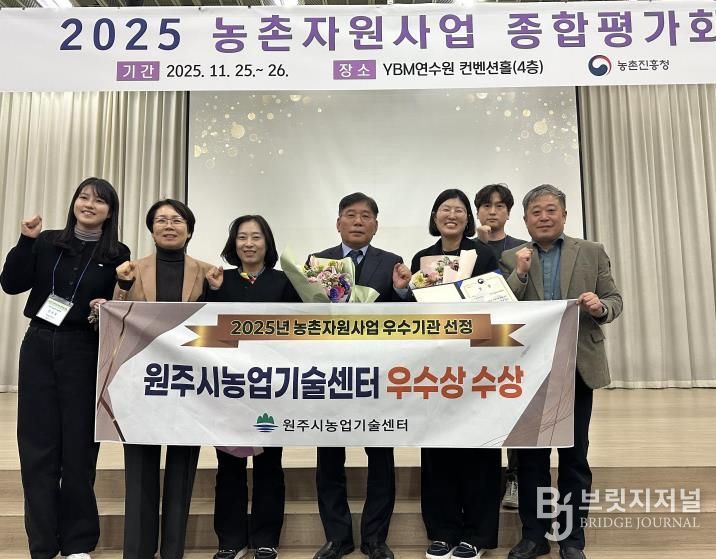 브릿지저널 윤나영 기자 | 원주시농업기술센터는 지난 25일 열린 농촌진흥청 주관 ‘2025년 농촌자원사업 성과확산 경진대회’에서 우수상을 수상했다.