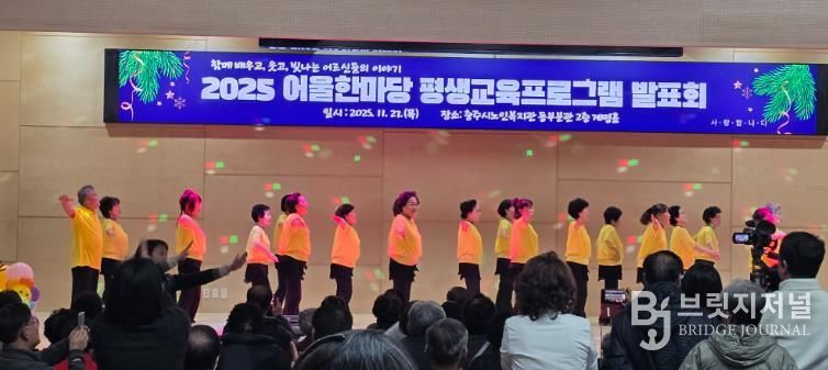 브릿지저널 김경미 기자 | 충주시노인복지관은 지난 27일 동부분관에서 노인들의 1년간 학습 성과를 나누고 지역사회와 함께하는 화합의 장인 ‘2025 어울한마당 평생교육프로그램 발표회’를 성황리에 개최했다고 밝혔다.