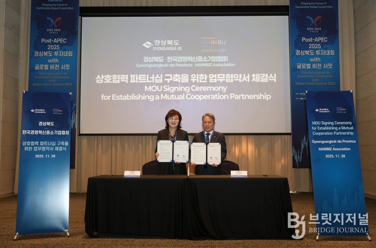 브릿지저널 정보영 기자 | 경상북도는 28일 경주 황룡원에서 한국경영혁신중소기업협회와 해외기업과 외국인 투자유치 협력을 대폭 강화하기 위한 상호협력 파트너십 업무협약(MOU)을 체결했다.