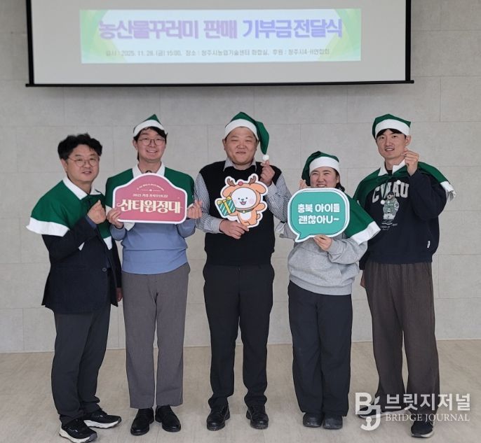 브릿지저널 김경미 기자 | 청주시4-H연합회는 28일 청주시농업기술센터 화합실에서 농산물꾸러미 판매로 마련한 수익금 616,000원을 초록우산어린이재단에 전달했다.
