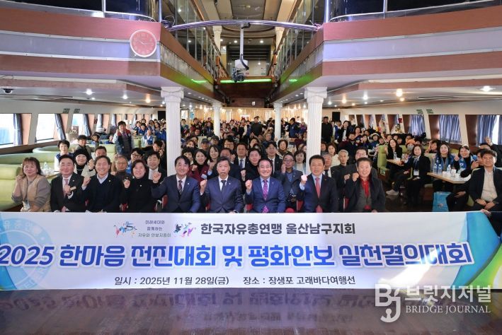 브릿지저널 윤나영 기자 | 한국자유총연맹 울산남구지회(회장 이상득)는 28일 고래바다여행선에서 회원 250여 명이 참석한 가운데 한마음 전진대회를 개최했다고 밝혔다.