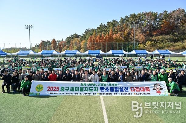 브릿지저널 윤나영 기자 | (사)울산중구새마을회(회장 정태식)가 11월 29일 오전 10시 중구 다목적구장에서 ‘2025 새마을지도자 탄소중립 실천다짐대회’를 개최했다.