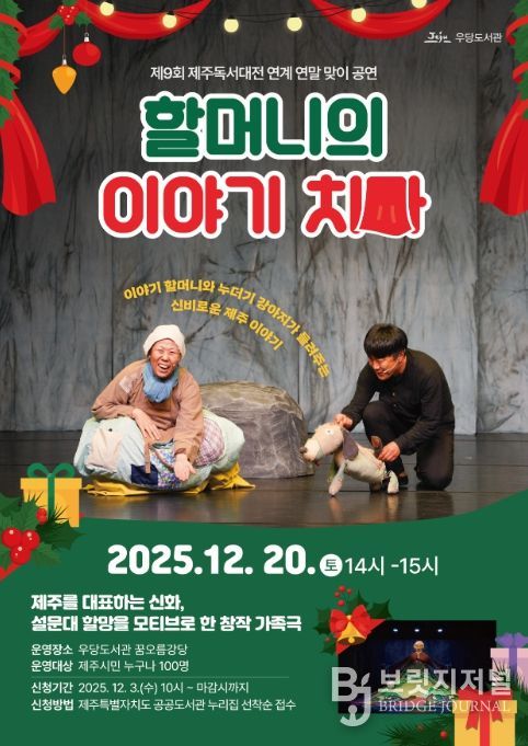 브릿지저널 정보영 기자 | 제주시 우당도서관은 연말을 맞아 12월 20일 오후 2시 연극 ‘할머니의 이야기 치마’ 공연을 개최한다.