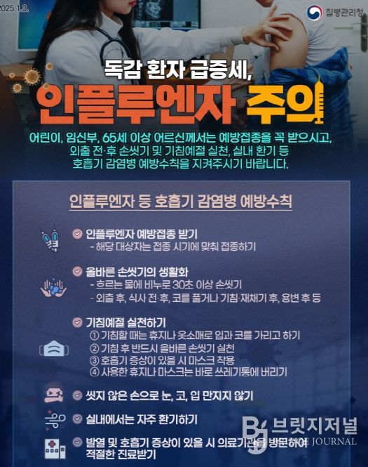 브릿지저널 정보영 기자 | 포항시는 전국에 인플루엔자(독감) 유행 주의보가 발령된 이후 환자가 빠르게 증가함에 따라 시민들에게 기침 예절과 손 씻기 등 호흡기 감염병 예방수칙 준수를 1일 재차 당부했다.