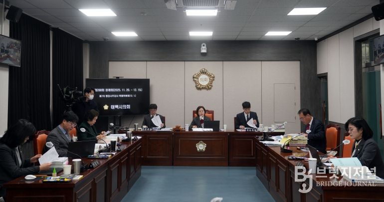 브릿지저널 윤나영 기자 | 태백시의회는 1일 제288회 태백시의회 제2차 정례회 제7차 행정사무감사특별위원회(위원장 최미영)를 개최하고, 공공사업과, 태백시시설관리공단, 건축과, 건설과, 예산정책실 5개 부서에 대한 행정사무감사를 실시했습니다.