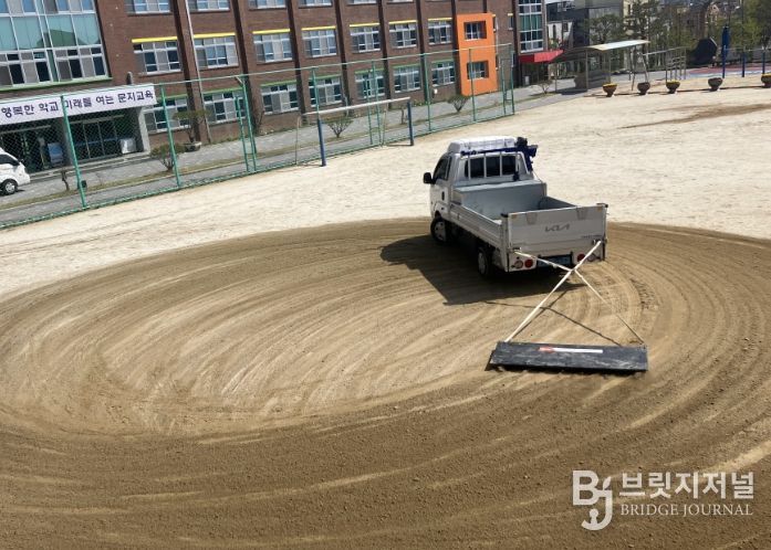 센터 소속 주무관이 1톤 트럭과 전문 장비를 활용해 학교에 직접 방문하여 평탄화 작업을 실시하며, 이를 통해 일선 학교에서는 인력과 예산의 한계로 수행하기 어려운 작업을 지원하여 학교의 업무 부담 경감에 기여하고 있다. 지난해 35교를 지원했으며, 올해는 지원 대상을 43교로 확대하여 더 많은 학교가 예산 절감 효과를 누리고 안전한 교육환경을 조성할 수 있도록 도왔다.