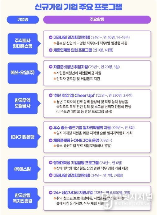 이날 행사에서는 신규가입 기업 엘지유플러스와 우수 활동기업 카카오의 사례 발표가 있었다. 엘지유플러스는 실무형 정보기술(IT) 인재 양성 프로그램인 ‘유레카 소프트웨어 교육과정’ 등을 통해 청년의 취업을 지원하고 있다. 카카오는 현직 경험을 보유한 강사진과 함께 팀 프로젝트 기회 등을 제공하여 청년이 개발자로 성장하도록 지원하는 ‘카카오테크 캠퍼스’를 운영하고 있다.