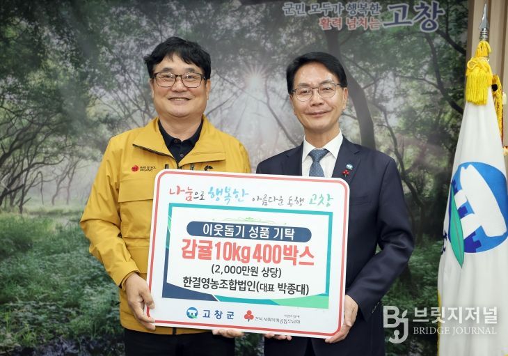 한결영농조합법인(대표 박종대)에서 감귤 10㎏ 400박스(2000만원 상당)의 성품을, 명품고추연구회(회장 구자권)에서 고춧가루 165㎏(620만원 상당)을, 고창성북교회(목사 오동혁)에서 500만원의 성금을, 대성전력(대표 권광식)에서 300만원의 성금을, 등나무숨 카페 바리스타 일동이 246만의 성금을 기탁했다.