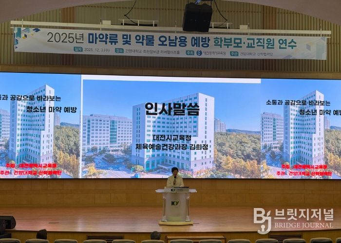 브릿지저널 정보영 기자 | 대전시교육청은 12월 3일 청소년의 마약류 및 약물 오남용 위험 증가에 대응하여 학부모와 교사가 함께 참여하는 ‘2025년 마약류 및 약물 오남용 예방 학부모·교사 특강’을 운영했다고 밝혔다.
