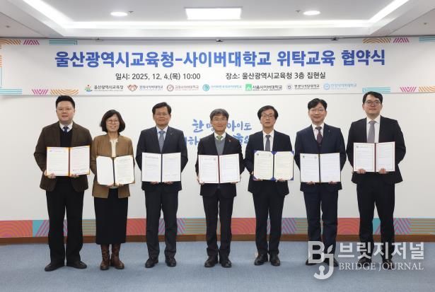 브릿지저널 윤나영 기자 | 울산광역시교육청은 4일 10시 집현실에서 사이버대학 6곳과 교직원 위탁교육 활성화를 위한 업무협약을 맺었다.