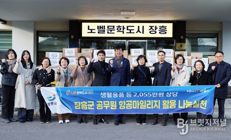 브릿지저널 김경미 기자 | 장흥군 공무원 122명이 공적 항공마일리지를 활용해 마련한 20,558,250원 상당의 생필품 197점을 지역 취약계층에 전달했다.