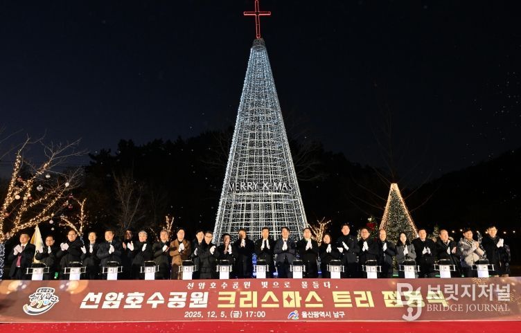 브릿지저널 윤나영 기자 | 울산 남구는 5일 선암호수공원 녹색의 숲 잔디마당에서 ‘2025 선암호수공원 크리스마스 트리 점등식’을 열고 화려하게 불을 밝혔다.
