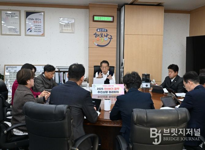 브릿지저널 윤나영 기자 | 울산 남구는 8일 ‘2025년 민선8기 공약 추진상황 점검회의’를 열고, 민선 8기 출범 이후 추진 중인 공약사업의 이행현황과 향후일정 등을 점검했다.