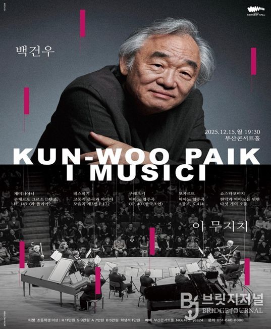 브릿지저널 윤나영 기자 | 클래식부산은 오는 12월 15일 오후 7시 30분 부산콘서트홀에서 세계적인 피아니스트 '백건우'와 이탈리아 명문 현악합주단 '이 무지치(I Musici)'가 부산에서 첫 협연 무대 '백건우 앤드(·) 이 무지치'를 선보인다고 밝혔다.