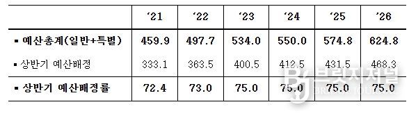 브릿지저널 정보영 기자 | 정부는 전체 세출예산의 75.0%를 상반기에 배정하는 내용의 「2026년도 예산배정계획」을 12.9일(화) 국무회의에서 확정했다.