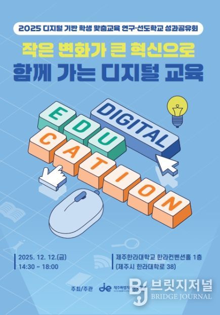 브릿지저널 정보영 기자 | 제주특별자치도교육청은 12일 제주한라대학 한라컨벤션홀에서 ‘2025 디지털 기반 학생 맞춤교육 연구·선도학교 운영결과 공유회’를 개최한다.