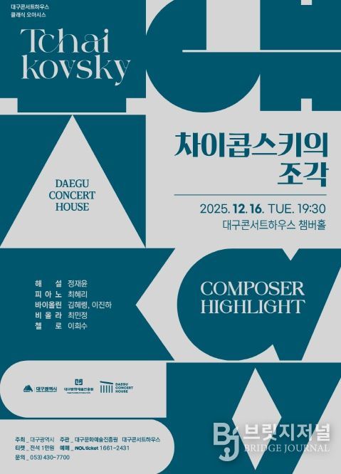 브릿지저널 김진석 기자 | 대구문화예술진흥원 대구콘서트하우스는 ‘컴포저 하이라이트’ 12월 공연을 통해 러시아 낭만주의 작곡가 차이콥스키의 작품 세계를 집중 조명한다.